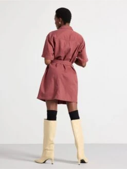 Lindex Femme – Robe à Manches Longues à Volants – Dark Pink – Drest