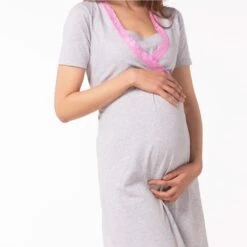 Kontakt – Robe Midi Femme Manches Courtes Bi-matières – Gris – Drest