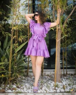 VELVET – Robe Courte A Volant Avec Ceinture – Violet – Drest