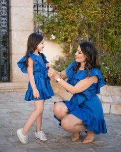 VELVET – Robe Courte A Volant Avec Ceinture – Bleu Azur – Drest