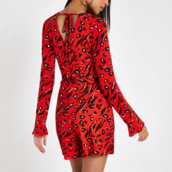 RIVER ISLAND -RED – PRINT LS RAVIOLI PRINT MESH DRESS – Drest