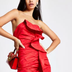 RIVER ISLAND -Red Ruched Front Bandeau Bodycon Dress – Drest