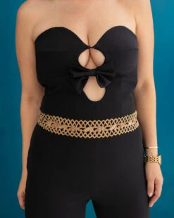 VELVET Femme – Combinaison En Crêpe Noir Bustier Avec Ceinture – Drest
