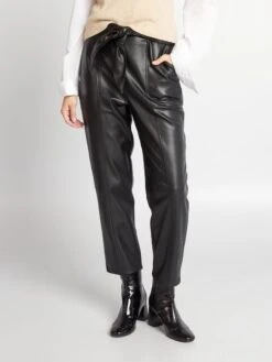 Kiabi Femme – Pantalon En Simili Avec Ceinture – Noir – Drest