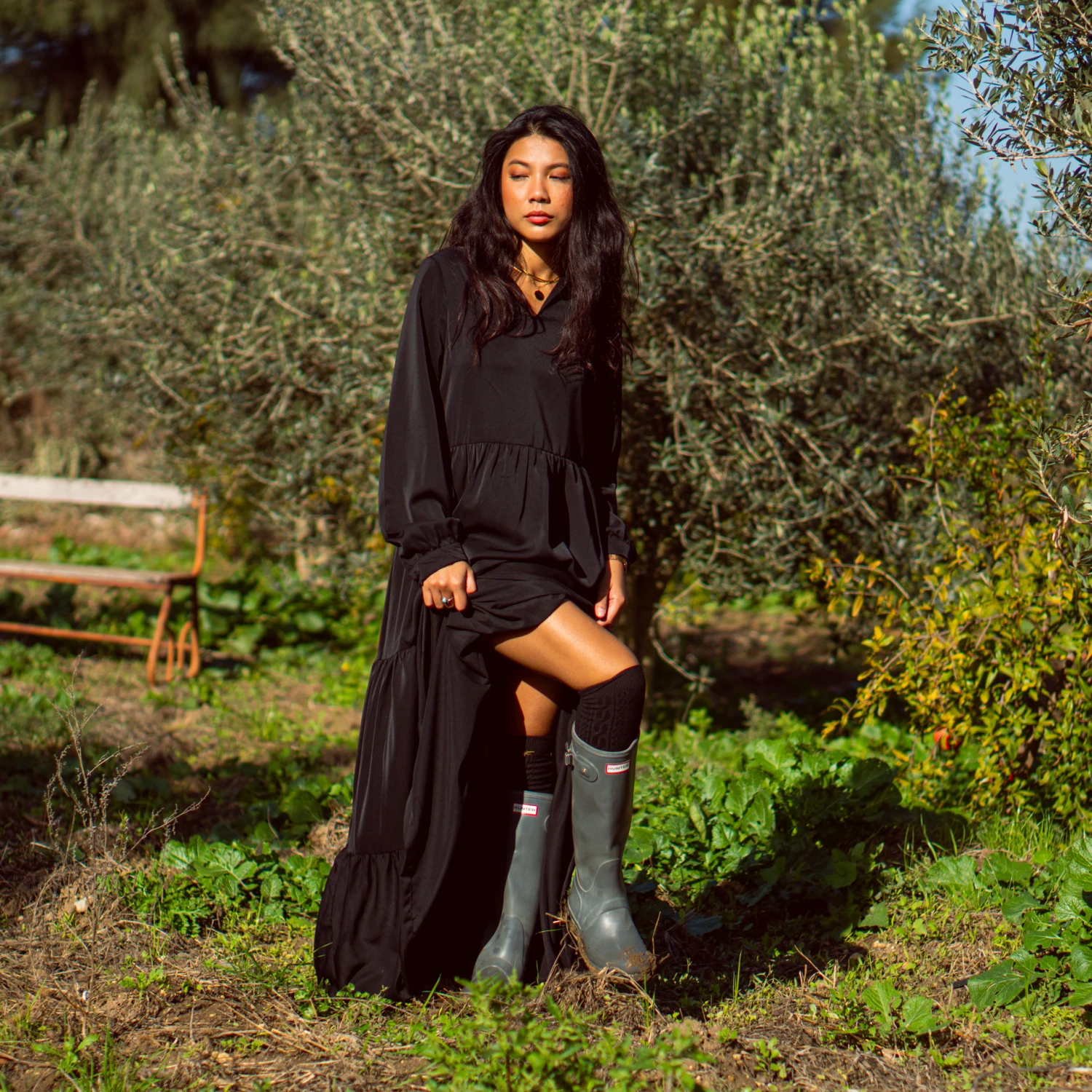 Lindex Femme – Robe Midi En Seersucker à Manches Black – Drest