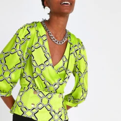RIVER ISLAND -Green Chain Print Double Breasted Blouse – Drest