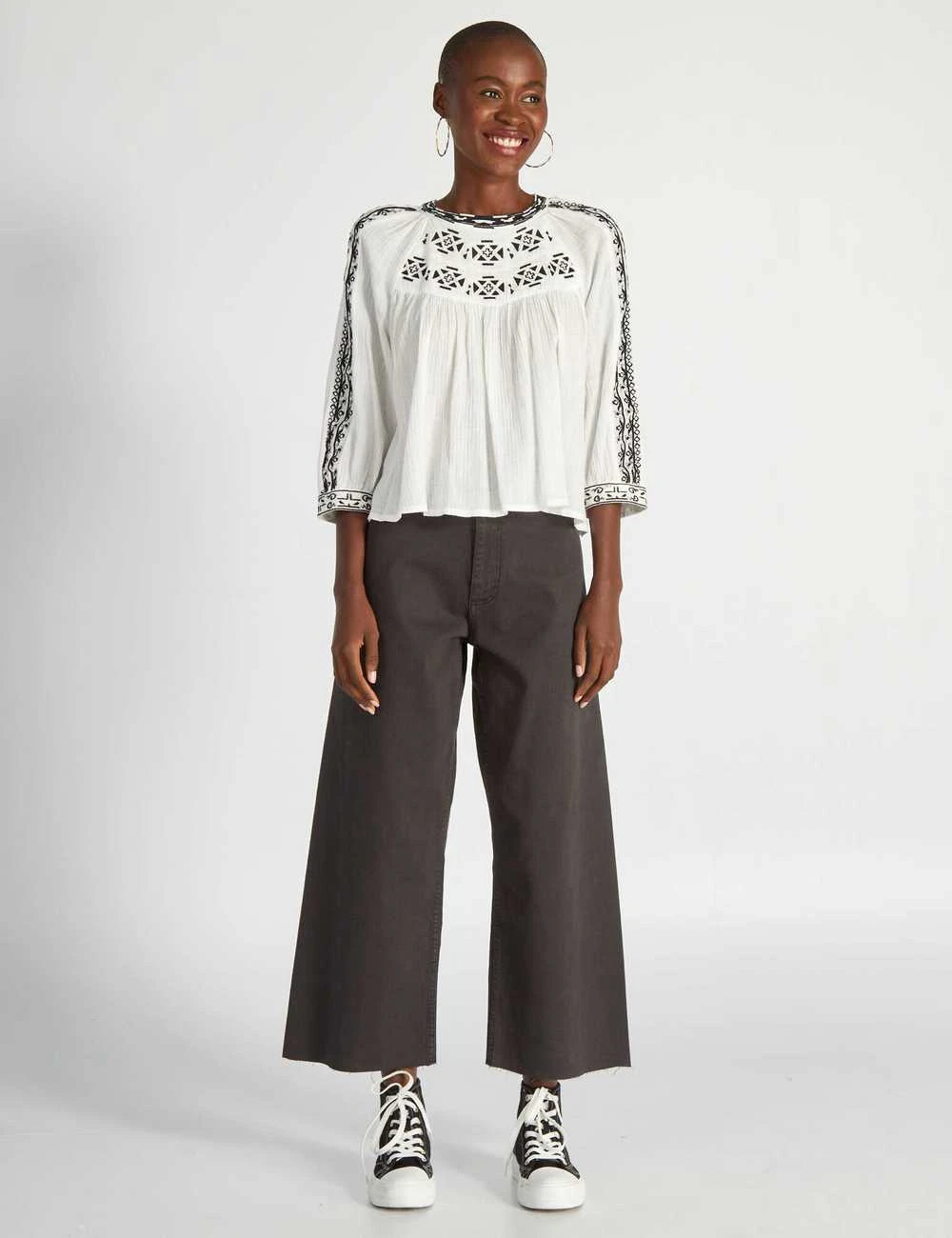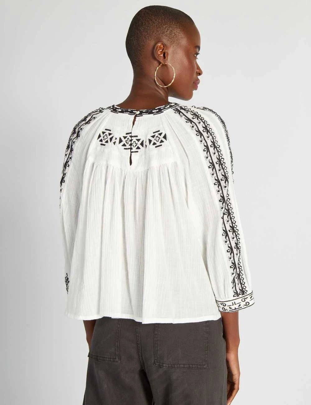 Broderies contrastées sur les manches et le col
