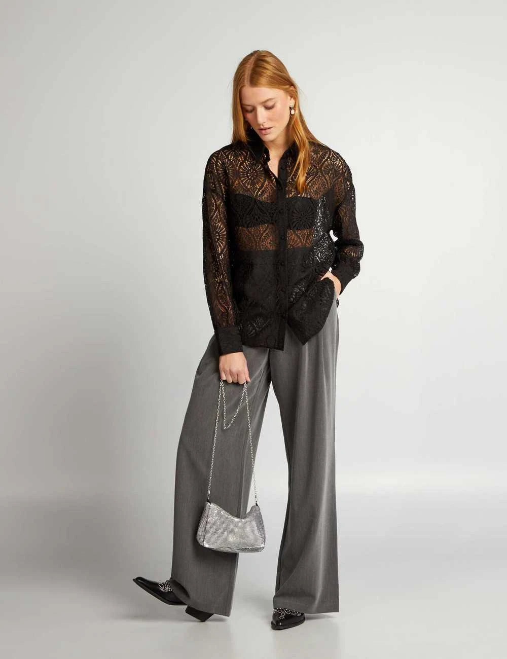 Lindex Femme – Chemisier à Manches Bouffantes – Light Grey – Drest
