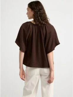 Lindex Femme – Blouse En Satin à Manches Courtes – Sunbrown – Drest