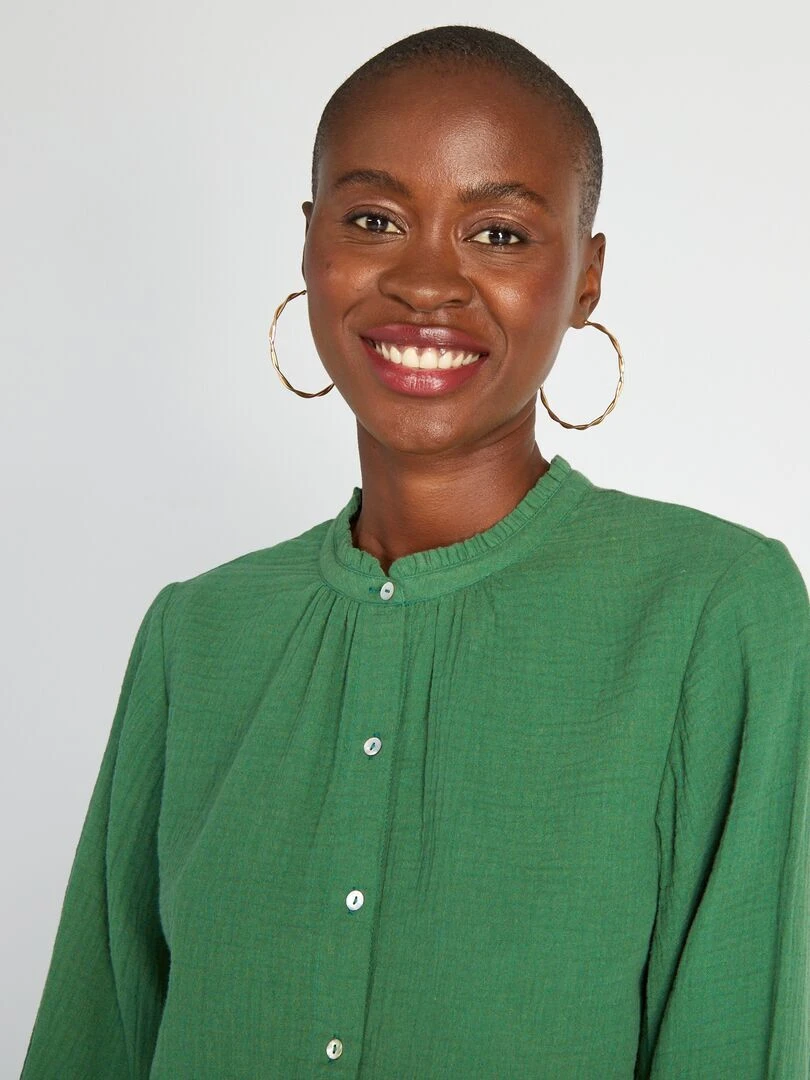 Un chemisier en gaze de coton avec sa maille épaisse qui tient chaud et réchauffe les styles !