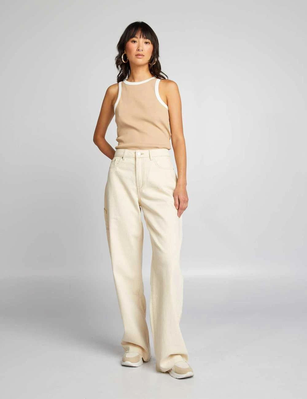 Ce jean large taille haute pour femme vous offre un look décontracté.