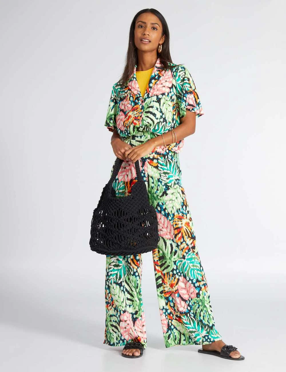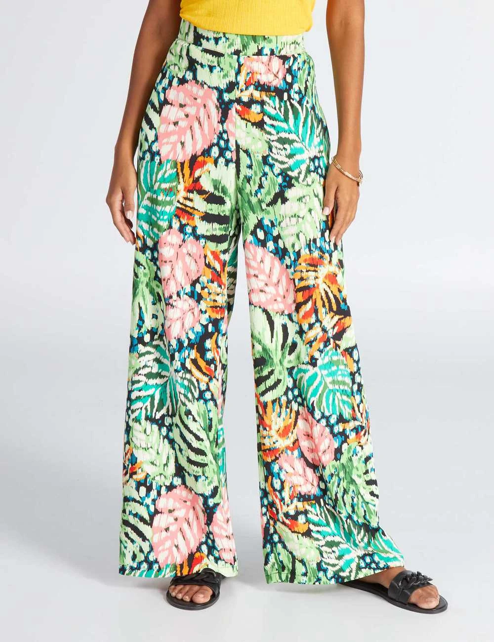 Ce pantalon a des imprimés colorés pour un esprit tropical !