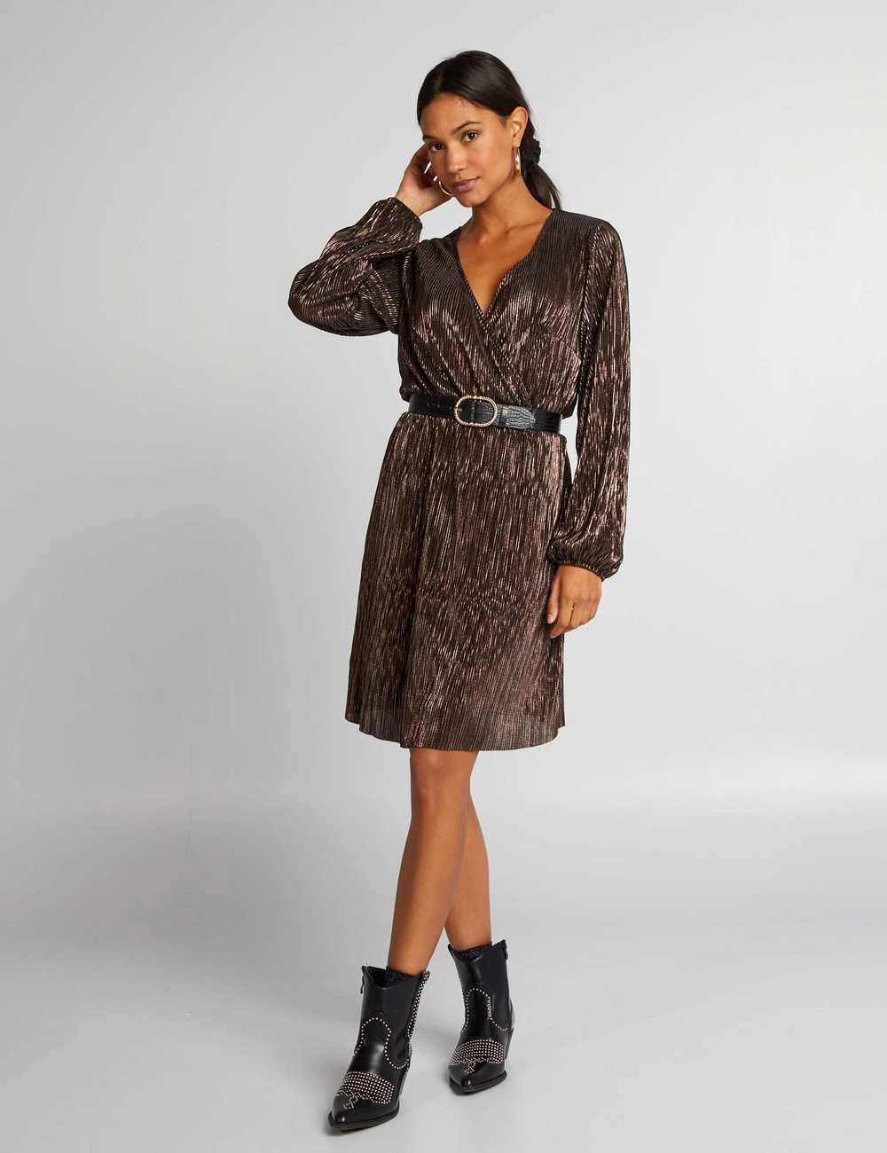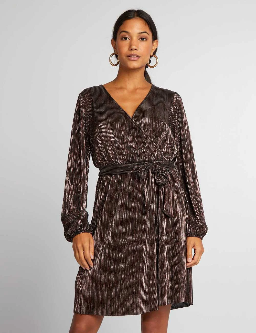Vous allez adorer cette robe plissée. Ajoutez une touche de paillettes à votre soirée avec son tissu brillant !