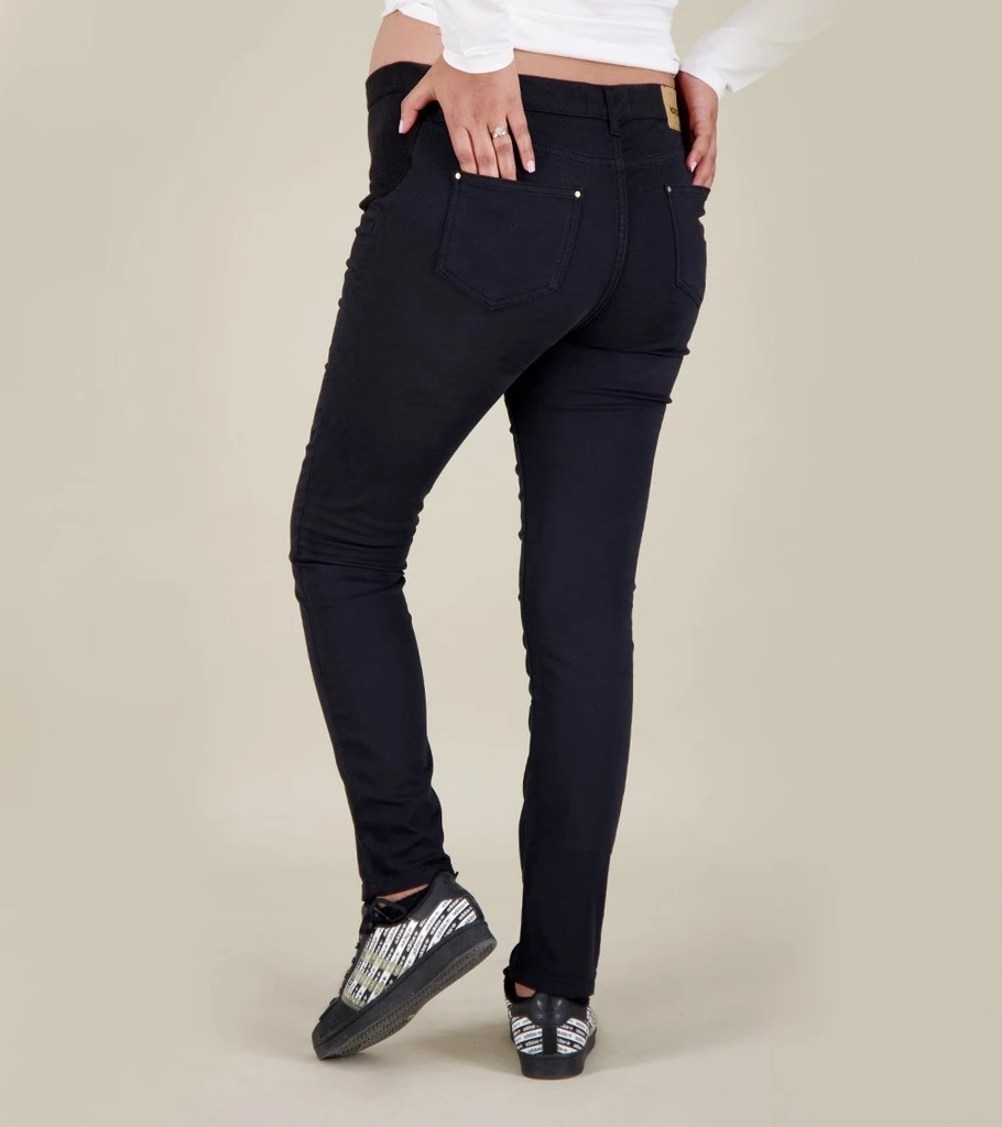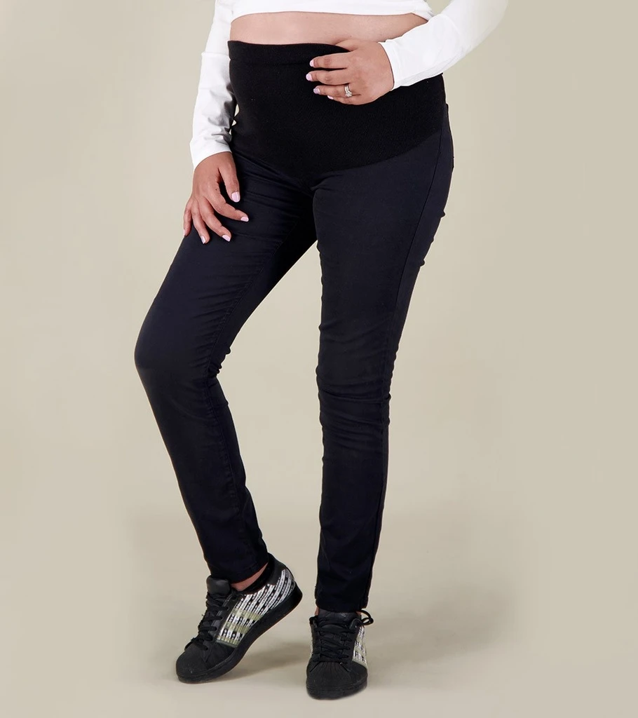 Pantalon confortable à coupe ajustées, en tissu doux et extensible, conçue avec un empiècement au niveau du ventre pour garantir le confort de la future maman.
