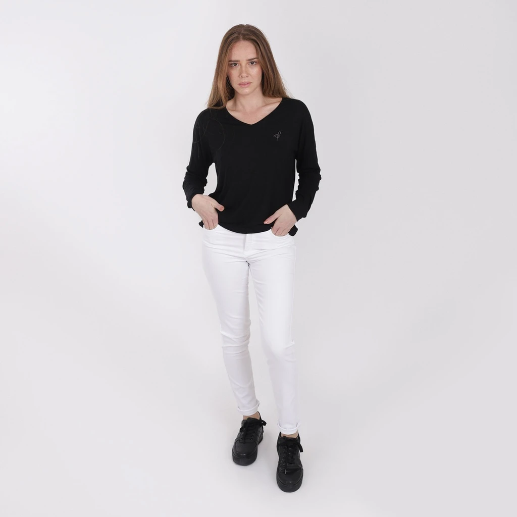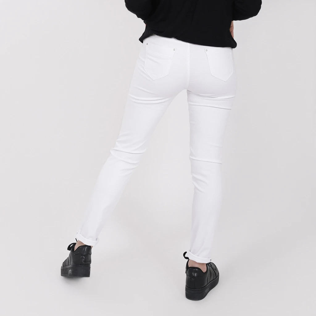 Pantalon en taille haute avec des poches plaquées sur les côtés. Fermeture zip sur le devant et un bouton métallique. Une matière en sergé de coton 98% ,ce pantalon est incontournable pour votre garde-robe d’été.