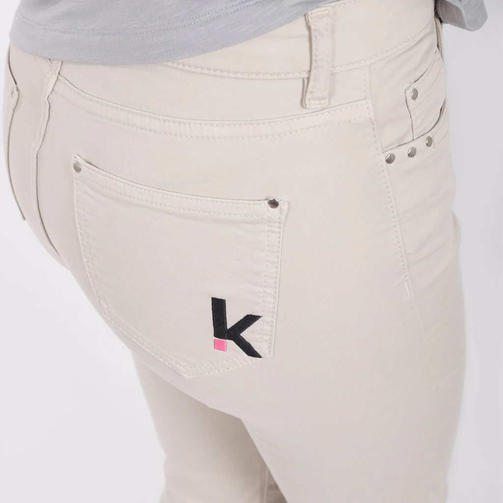 Pantalon en taille haute avec des poches plaquées sur les côtés. Fermeture zip sur le devant et un bouton métallique. Une matière en sergé de coton 98% ,ce pantalon est incontournable pour votre garde-robe d’été.