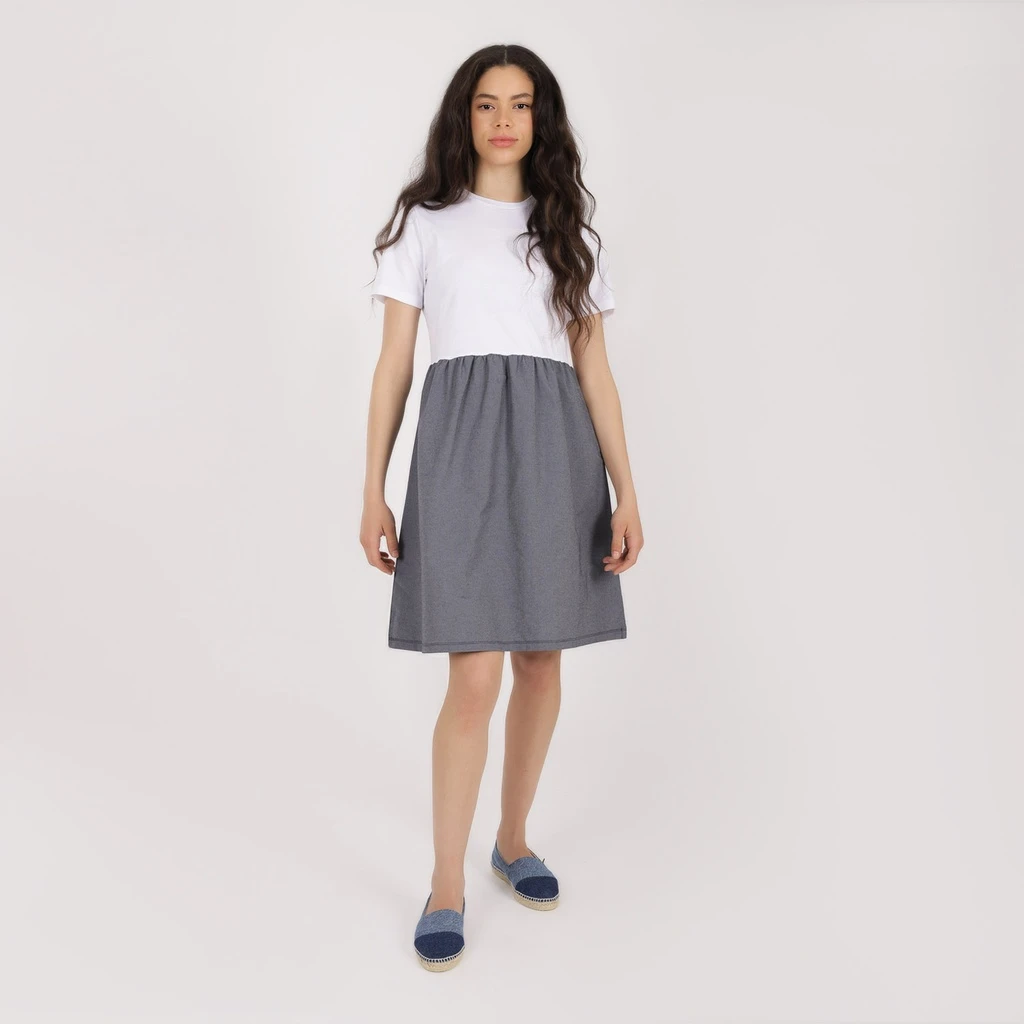 Ajoutez une touche de sophistication à votre look avec cette superbe robe aux genoux. Confectionnée avec soin à partir d’un mélange combinant un jersey de coton léger et doux et le jersey chaîne et trame, cette robe vous offrira un confort absolu tout au long de la journée. Son design intemporel vous met en valeur avec sa coupe flatteuse, qui vous fera paraître et vous sentir incroyable. Complétez cet ensemble chic avec des bijoux simples et des espadrilles pour obtenir un look élégant et confort.