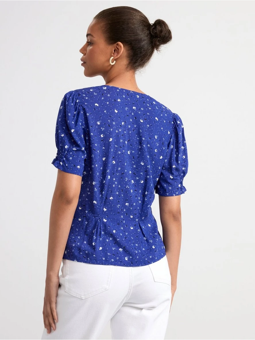 Une blouse avec un imprimé floral intégral. MATÉRIEL. Cette pièce est basée sur OnceMore® de Södra, une nouvelle matière première innovante en fibre de viscose, où des textiles recyclés sont combinés avec du bois issu de forêts gérées de manière responsable. OnceMore® est un matériau de haute qualité et est produit avec un impact moindre sur l’environnement par rapport aux matières premières classiques en fibre de viscose.