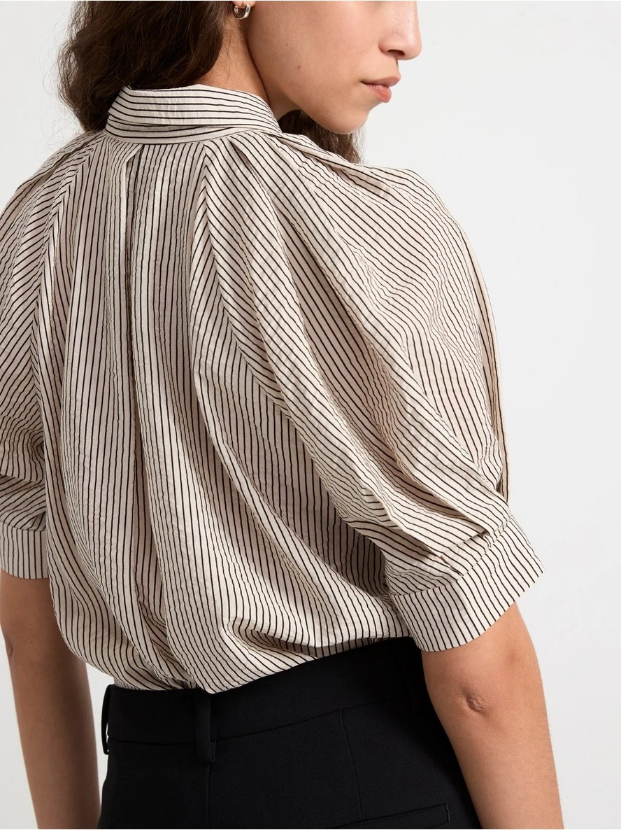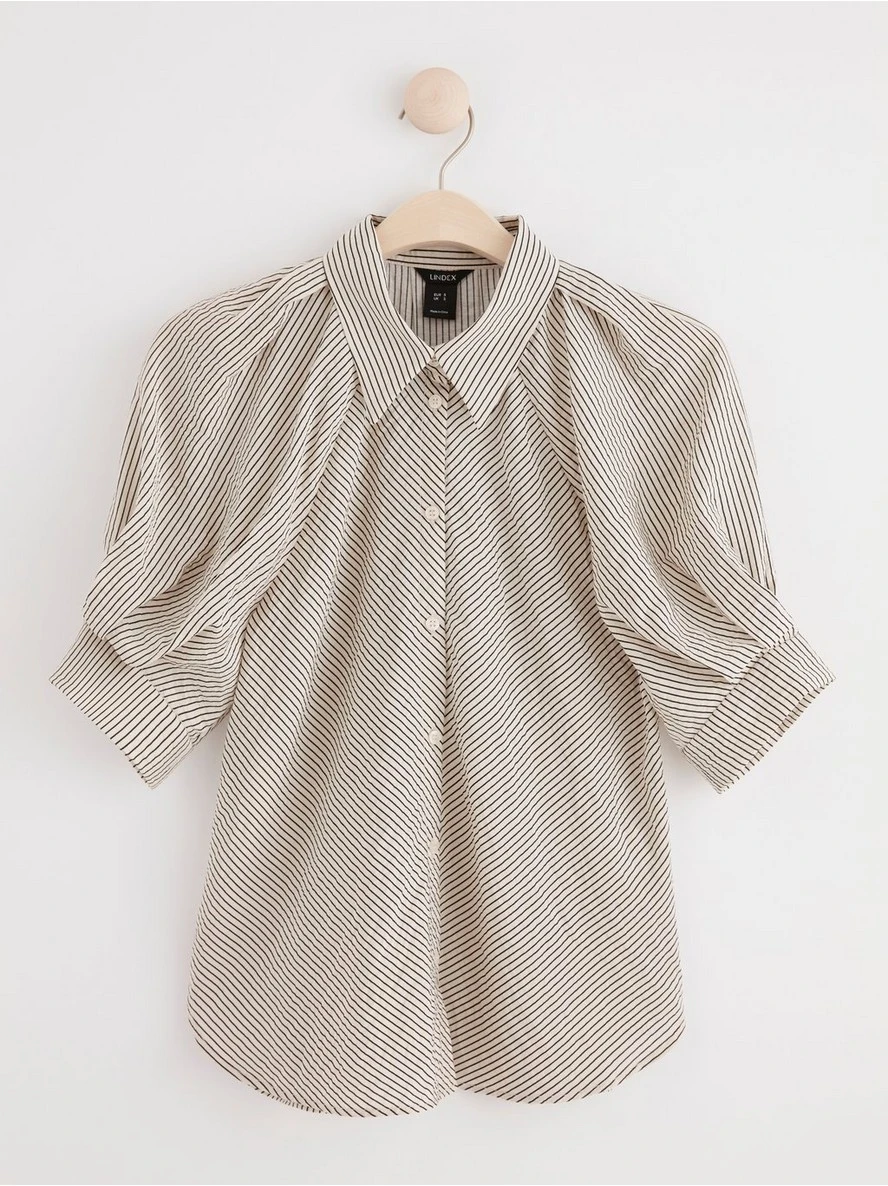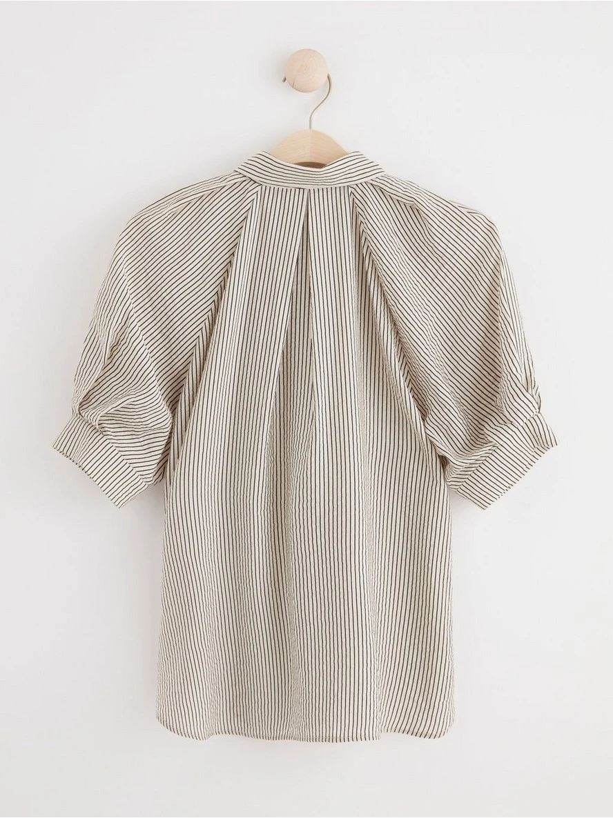 Un chemisier élégant avec des manches courtes bouffantes, un col chemise et des boutons sur le devant. Fabriqué en mélange de viscose doux. MATÉRIEL. Cette pièce est en partie basée sur OnceMore® de Södra, une nouvelle matière première innovante en fibre de viscose, où des textiles recyclés sont combinés avec du bois issu de forêts gérées de manière responsable. OnceMore® est un matériau de haute qualité et est produit avec un impact moindre sur l’environnement par rapport aux matières premières classiques en fibre de viscose.