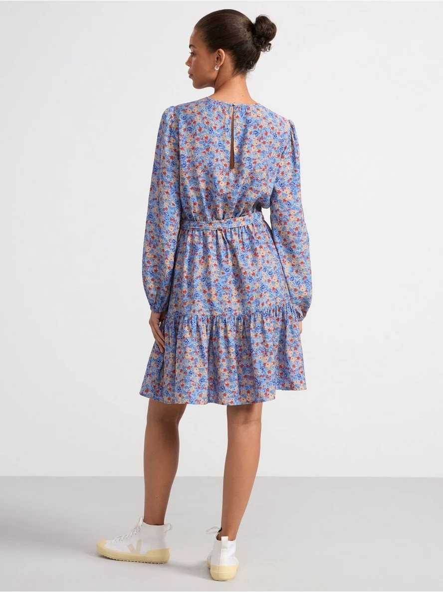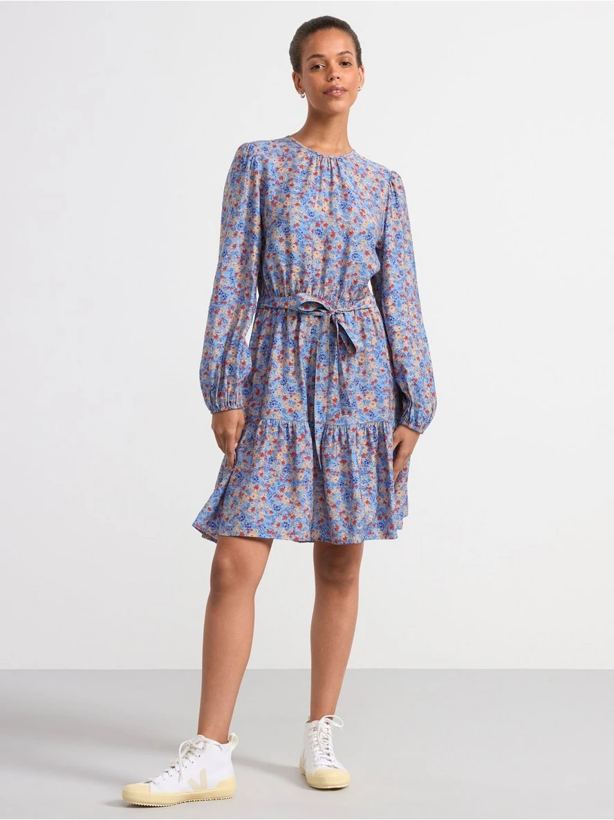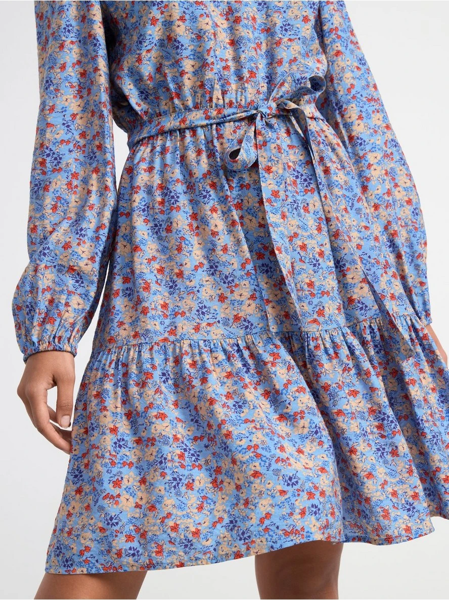 Une mini-robe estivale à manches longues avec un imprimé floral intégral et une bande à nouer à la taille. MATÉRIEL. Cette pièce est en partie basée sur OnceMore® de Södra, une nouvelle matière première innovante en fibre de viscose, où des textiles recyclés sont combinés avec du bois issu de forêts gérées de manière responsable. OnceMore® est un matériau de haute qualité et est produit avec un impact moindre sur l’environnement par rapport aux matières premières classiques en fibre de viscose.