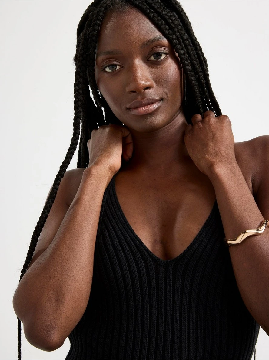 Mini-robe en maille côtelée avec bretelles fines et silhouette ajustée, confectionnée en coton mélangé doux. MATÉRIEL. Cette pièce est partiellement confectionnée en coton recyclé. Lorsque vous utilisez du coton recyclé, cela signifie que le coton qui a déjà été cultivé et qui aurait été gaspillé a une autre chance. C’est une culture beaucoup plus économe en ressources et en eau que la culture de nouveau coton.