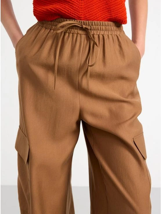 Pantalon style cargo élégant avec taille haute, jambes larges et grandes poches. MATÉRIEL. Cette pièce est partiellement réalisée en TENCEL™ Lyocell. Le matériau provient d’une foresterie responsable et est produit avec un impact moindre sur l’environnement. La production s’effectue dans un système en boucle fermée où les produits chimiques sont réutilisés.