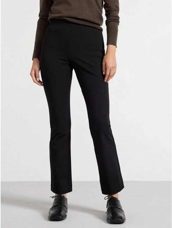Pantalon extensible taille haute avec jambe évasée et courte et fermeture éclair latérale dissimulée. Fabriqué dans un mélange de coton doux.
