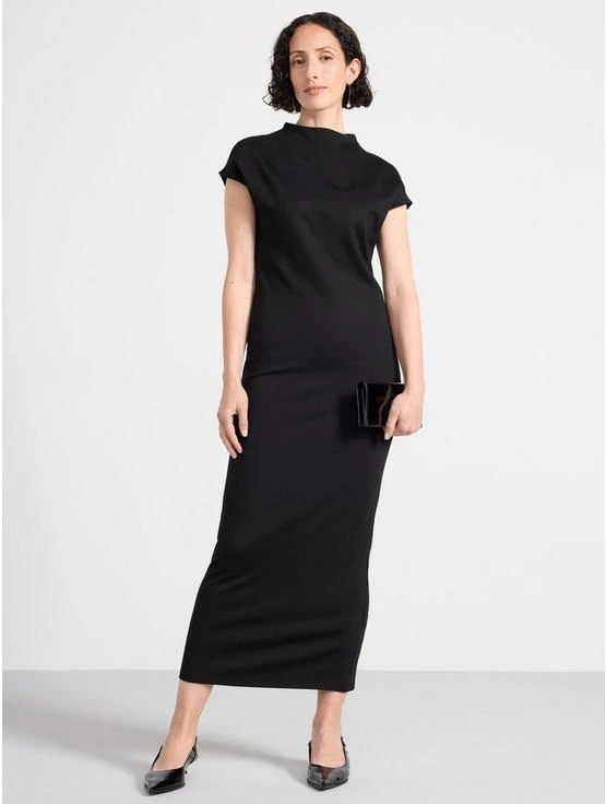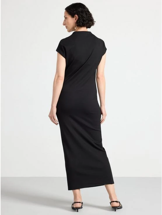 Robe longue en jersey à manches courtes, encolure haute et silhouette ajustée.
