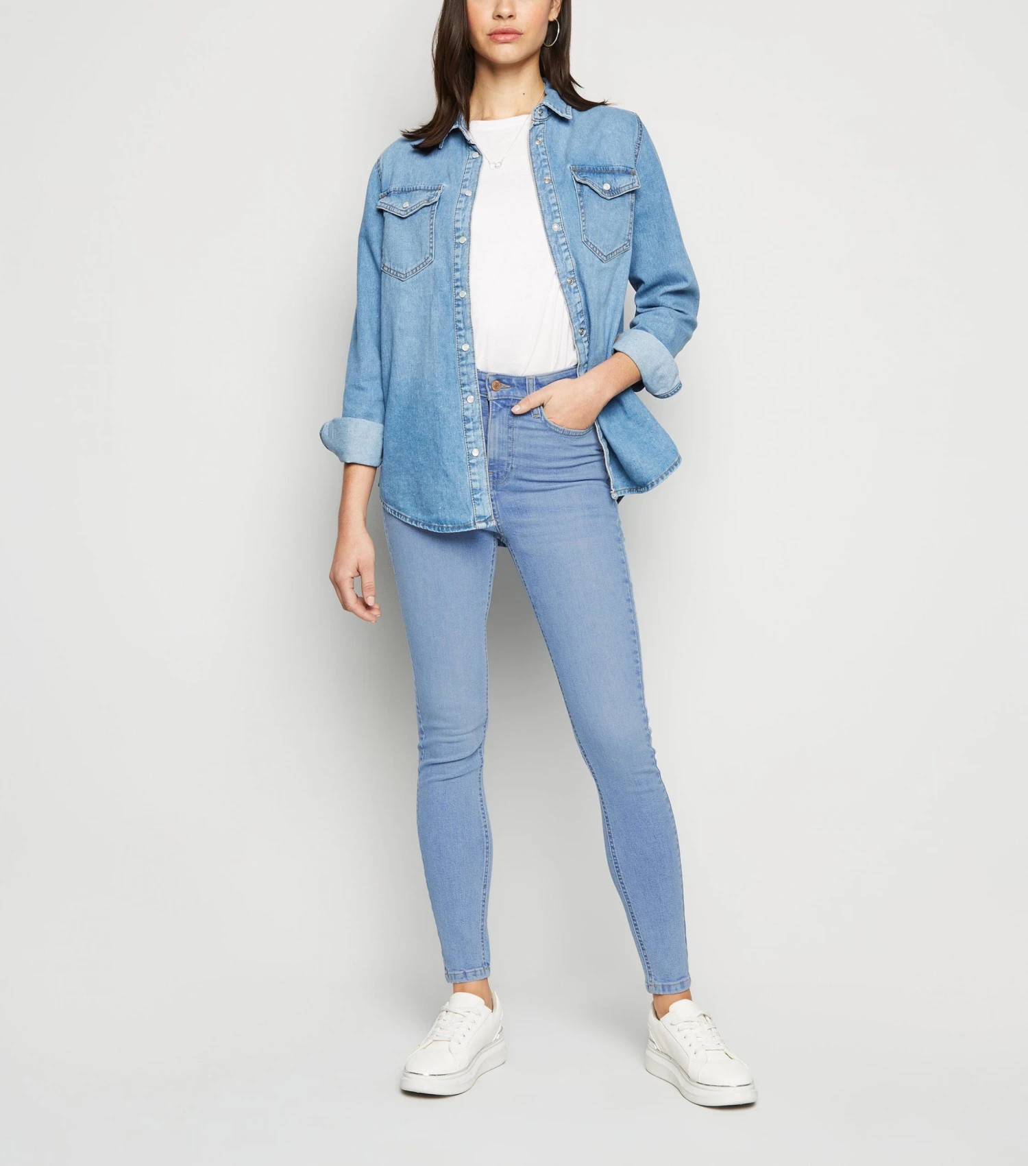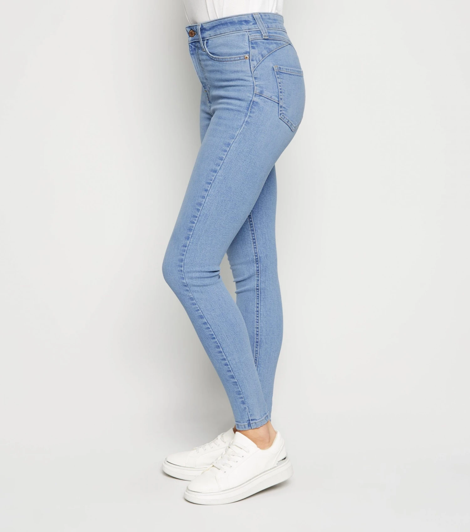 Renouvelez vos essentiels en denim avec ce jean skinny bleu pâle. À porter avec une chemise, un t-shirt blanc et des baskets.- Arrive au-dessus de la taille- Passants de ceinture- Modèle à 5 poches- Coutures sculptantes- Fermeture éclair et bouton- Délavage léger- Denim ultra stretch- Coupe skinny- Le mannequin mesure 1,73 m et porte du 38