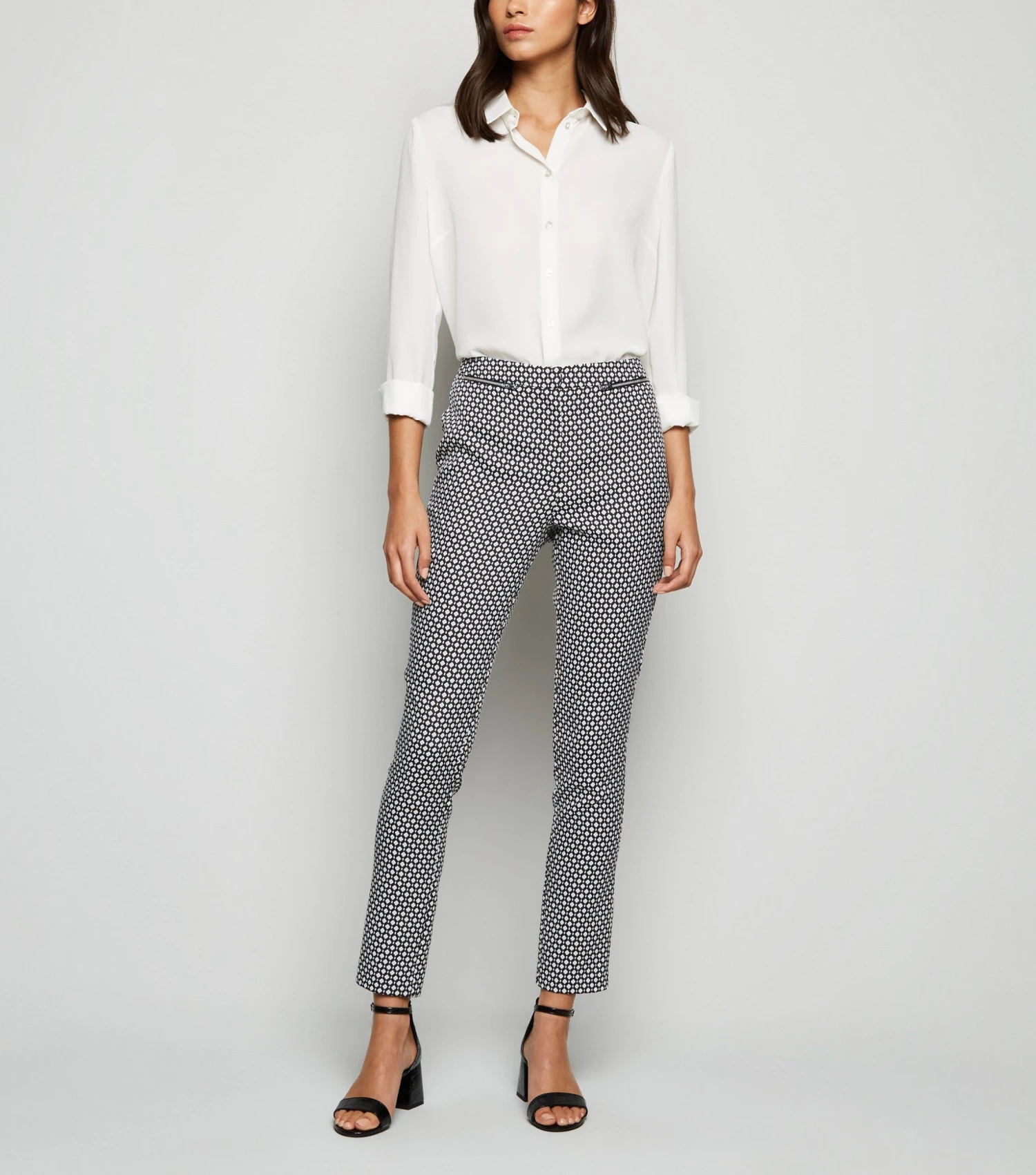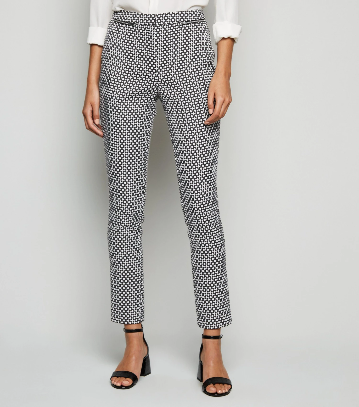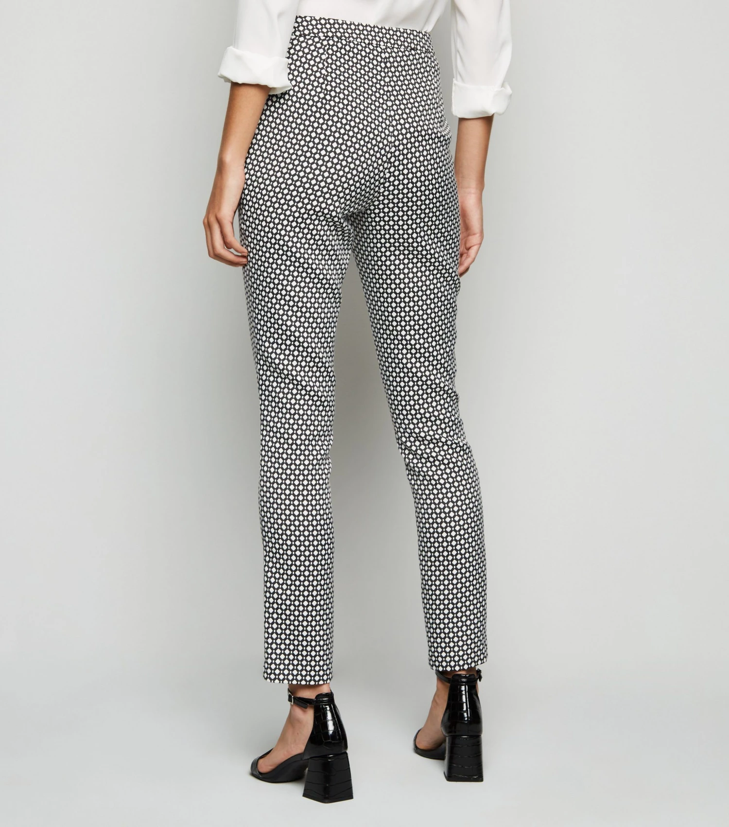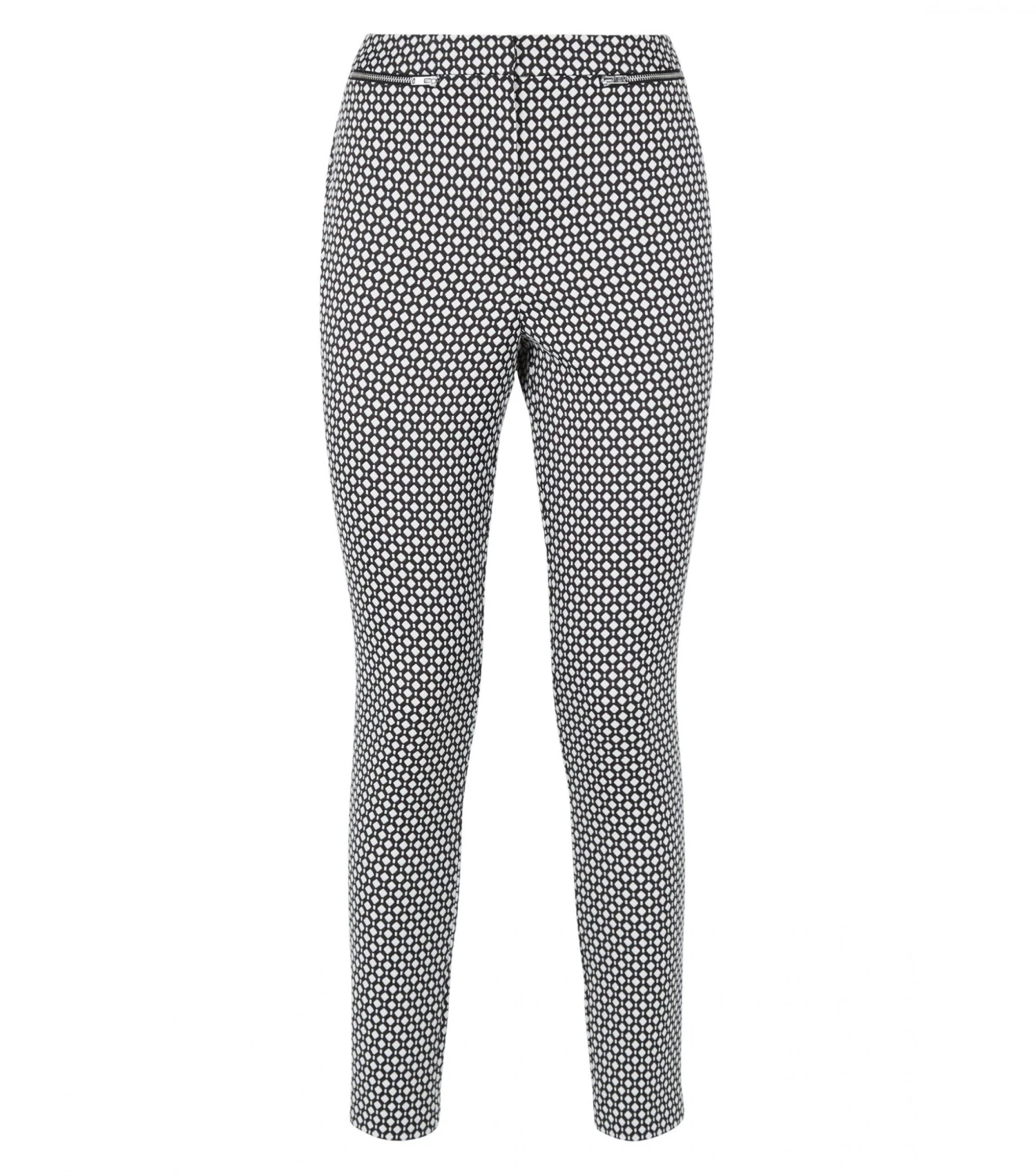 Ce pantalon en jacquard à motif géométrique deviendra une pièce incontournable dans votre garde-robe. À porter avec une chemise blanche et des talons blocs pour un look de bureau épuré.- Jacquard à motif géométrique- Taille haute- Poches non-fonctionnelles zippées- Coupe fuselée- Agrafe et fermeture éclair sous patte- Jersey doux au toucher- Coupe slim.- Le mannequin mesure 1,73 m et porte du 38_x000D_