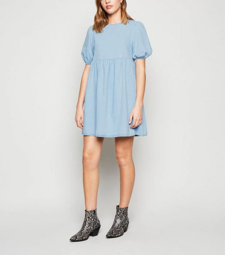 Optez pour des manches tendance avec cette robe bleue en jean. À porter avec des boots pour un look chic.