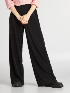 Kiabi Femme – Pantalon Wide Leg En Maille Plissée – Noir – Drest