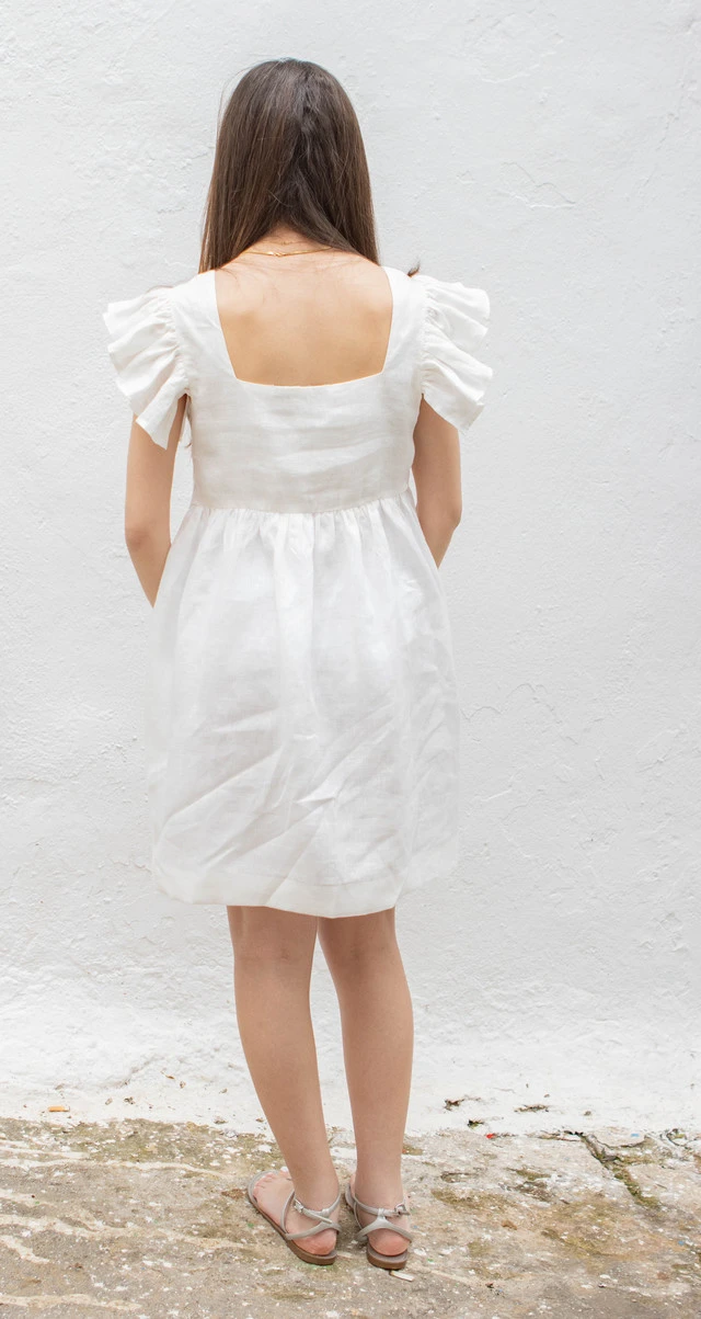 La Robe Chrysalide, avec ses manches à volants si légères et sa coupe évasée, ravira vos chaudes journées estivales. En lin, déclinée en quatre coloris : orange douce, blanc de titane, framboise écrasée ou brique chaude.