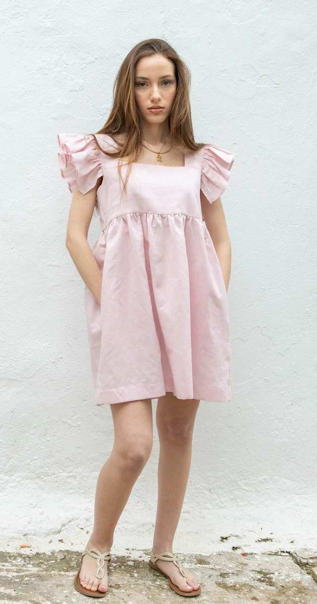 La Robe Chrysalide, avec ses manches à volants si légères et sa coupe évasée, ravira vos chaudes journées estivales. En lin, déclinée en quatre coloris : orange douce, blanc de titane, framboise écrasée ou brique chaude.